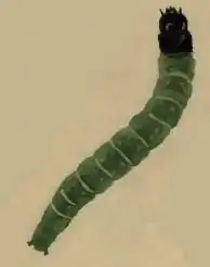 The larvae feed on the flowers and leaves of Dictamnus albus. They feed from a spinning.