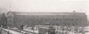 The Des Moines Coliseum was a building located in Des Moines, Iowa. Opened in 1908, it served as the main venue for large public events in Des Moines for four decades. Herbert Hoover launched his 1932 re-election campaign from the Coliseum, and several other U.S. Presidents spoke there, including Woodrow Wilson, Theodore Roosevelt, and William Howard Taft. Drake University played basketball in the Coliseum for a number of years, and it was used for wrestling, boxing, ice skating, and circus events. It was destroyed by fire on August 13, 1949. A YMCA was later built on the site, but that was torn down in 2015. In 2018 the site was acquired by the GSA to become the new courthouse for the U.S. District Court for the Southern District of Iowa.