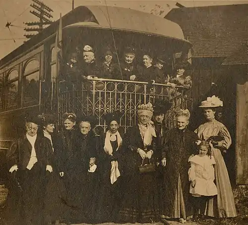 Des Moines Women's Club Members and Trolley