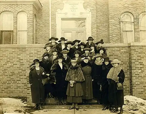 The Des Moines Women's Club was founded in Des Moines, Iowa, in 1885 by a group of five women inspired by the national women's movement developing in the second half of the nineteenth century. The woman's club movement was a social movement that took place throughout the United States that established the idea that women had a moral duty and responsibility to transform public policy. The women first met at Plymouth Church, Des Moines, Iowa at 5th and Grand Avenue, to form the club with twenty-two charter members. The first president of the club was Margaret Cleaves, a notable American physician. Another founder and the second president was Martha Callanan, a noted philanthropist and suffrage worker. Two noted journalists were also charter members: Ella Hamilton Durley and Calista Halsey Patchin. Other prominent founders were Mrs. Maria S. Orwig and Mrs. Julia Hunting, active members in the American Association for the Advancement of Women. The club members met at various places throughout the city during the early years. In 1894 club records state that there were 136 members. Dues were $2 per year.[1]