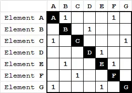 A DSM is a square matrix, representing linkages between the system elements. The system elements are often labeled in the rows to the left of the matrix and/or in the columns above the matrix. These elements can represent for example product components, organization teams, or project activities.