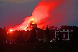 An island on the artificial Wörlitz Lake features Europe's only artificial volcano. When Leopold III went on a grand tour of Europe in the 1760s, he was captivated by a trip to Naples in which he saw a smouldering Mount Vesuvius and would have heard about the newly-discovered town of Pompeii.[4] Twenty-two years later, the German royal set about bringing a piece of Naples to Germany; he had his architect build a brick inner building nearly five stories high and cover it with local boulders.[4] At the top, a hollow cone was made and contained a high chamber, complete with three fireplaces and a roof that contained an "artificial crater" that could be filled with water. He then constructed a lake around the volcano and invited his friends to watch an eruption.[4] Only contemporary accounts detail what the 18th-century artificial eruption would have been like, but the practice still takes place today, complete with modern effects, after the island was restored to its past glory.[4]