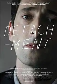 Detachment is a 2011 American drama film directed by Tony Kaye and written by Carl Lund. Its story follows Henry Barthes, a high-school substitute teacher who becomes a role model to his students and others. It stars Adrien Brody, Marcia Gay Harden, Christina Hendricks, William Petersen, Bryan Cranston, Tim Blake Nelson, Betty Kaye, Sami Gayle, Lucy Liu, Blythe Danner and James Caan.