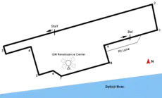 The new downtown circuit is based on lessons learned from the Nashville Street Circuit. It is designed to be less disruptive to city traffic while also being more accessible to spectators and having more points of visibility to the racing than the old Detroit Street Circuit. The new circuit will feature ten corners and is 1.7 miles in length compared to the 2.5 mile circuit used by Formula One and CART and the 2.35 mile Raceway On Belle Isle.[32] It will travel from the start/finish line on Atwater Street and head onto Schwarzer Street, Franklin Street, and Rivard Street in the first series of corners. From Rivard Street drivers will make a sharp left turn onto the circuit's most prominent feature, a 0.7 mile straightaway down East Jefferson Avenue. This straightaway will be the longest straightaway on an IndyCar street circuit, eclipsing the dual straights on the Korean War Veterans Memorial Bridge in Nashville. The circuit will then turn onto Bates Street before heading back onto Atwater Street. The only part of the old Detroit Street Circuit used on the new circuit will be the old circuit's sixteenth and seventeenth corners that were then known as The Ford Corner. On the new circuit this section will be the eighth and ninth corners. Neither of the tunnels or the side streets used on the old Detroit Street Circuit will be used on the new circuit to minimize impact on local businesses and city traffic around downtown Detroit.[33] To increase spectator viewership IndyCar and Penske Entertainment will offer free viewership at multiple points along the circuit.[34] The Detroit City Council stated the entire circuit will be fully resurfaced before the race. Construction and tear down of the circuit will take place 8:00PM and 5:00AM over the course of twenty days respectively, minimizing disruptions to city traffic around the Renaissance Center.[31]
