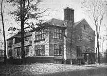 In 1913, the school decided to develop an eastern branch campus to serve students on the city's east side.[7] This site in Indian Village along Charlevoix was chosen, and the school again contracted Albert Kahn to design a new building.[8][9] The building is one of only three schools designed by Kahn, and the only one still extant.[10] Kahn's design for the school drew from then-popular English influences,[11] and was a radical departure from previous school designs, both in his extravagant use of windows and use of stucco rather than brick.[9] The building opened the following year as the "Eastern Liggett" branch.[8] In 1916, landscape architect O. C. Simonds designed a landscape plan for the school.[12]