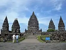 In Mataram kingdom in Central Java, it is customary to erect candi (temple) to honor and sent the soul of a dead king. The image of god inside the garbhagriha (central chamber) of the temple often portrayed the deceased king as a god, as the soul of the dead king finally united with the revered god in Svargaloka. Some archaeologists propose that the statue of Shiva in the garbhagriha of Prambanan's main temple was modelled after King Balitung, serving as a depiction of his posthumous deified self.[19] It is suggested that the concept was the fusion of Hinduism with native Austronesian ancestor worship.[20] The 11th century great king Airlangga of Kahuripan in East Java, was deified posthumously as Vishnu in Belahan temple. In Java, the tradition of divine king continued well to Kediri, Singhasari, and Majapahit kingdom in the 15th century.
