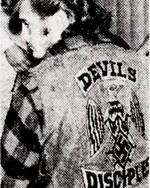 ![]() Patch logo of the Devil's Disciples MC, as sported by one of its members. | |