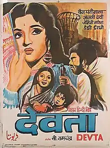Devta (transl. Snake God) is a 1956 Hindi partly coloured swashbuckler film written by Sadasiva Bramham and directed by Pattana. The film stars Vyjayanthimala in the title role, along with Gemini Ganeshan and Anjali Devi in the lead, while Agha, Bipin Gupta, Krishna Kumari and M. N. Nambiar form an ensemble cast. The film was produced by Narayanan Iyengar with his production company; Narayanan Company. The music was composed by C. Ramchandra, with lyrics provided by Rajendra Krishan. The film was a remake of the 1955 Tamil film Kanavane Kankanda Deivam.[1]