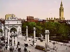 The Dewey Arch was a triumphal arch that stood from 1899 to 1900 at Madison Square in Manhattan, New York.[2][3][4] It was erected for a parade in honor of Admiral George Dewey celebrating his victory at the Battle of Manila Bay in the Philippines in 1898.[5]