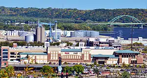 ![]() Diamond Jo Casino in the foreground; the Dubuque-Wisconsin Bridge is at the upper right. | |