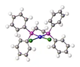 - ↑ Van Hecke, Gerald R.; Horrocks, Jr., William DeW. (1966). "Ditertiary Phosphine Complexes of Nickel. Spectral, Magnetic, and Proton Resonance Studies. A Planar-Tetrahedral Equilibrium". Inorganic Chemistry. 5 (11): 1968–1974. doi:10.1021/ic50045a029.
