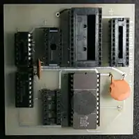 A BASIC interpreter could be purchased either on cassette tape or on a set of three 4kB EPROMs. The first 4kB BASIC EPROM replaced the 2kB monitor EPROM supplied with the computer and contained the first 2kB of BASIC, plus the monitor program. The BASIC interpreter was based on Tiny BASIC rewritten and modified by Ron Harris.[4]
