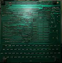 The standard computer had no serial or parallel I/O as such, relying on the optional S-100 bus interface for I/O and expansion. A 10-pin connector at the back of the board was labeled "PORT" and had power, as well as a pair of digital outputs and two available digital input lines. The connector was for a future RS-232 / 20 mA current loop serial interface,[3] but that was never implemented.