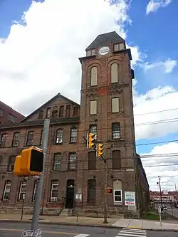 Dickson Works, also known as the Stacor Building, is a historic factory building located at 225 Vine Street in Scranton, Pennsylvania, a town in Lackawanna County. It was built about 1856, and is a long three-story, brick industrial building measuring 100 feet by 300 feet. It features a tower measuring 100 feet tall, a double pitched roof with clerestory windows, and shallow segmental arched windows. It once housed the Dickson Works, a shop to repair and manufacture mine machinery and boilers. The Stacor Equipment Company occupied the building in 1963, and manufactured library tables and furniture.[2]