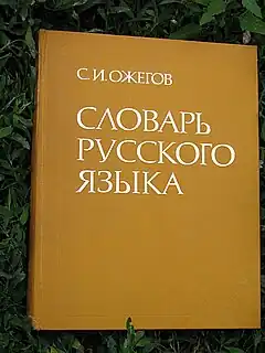 Dictionary of the Russian Language (Russian: Слова́рь ру́сского языка́) is an explanatory dictionary of the Russian language. The first edition was published under the editorship of Ozhegov in 1949.[1] It contained about 57,000 words; its 21st edition (1990) counted 70,000 word entries. From 1992 the dictionary is released with the names of two co-authors, Ozhegov and Shvedova.