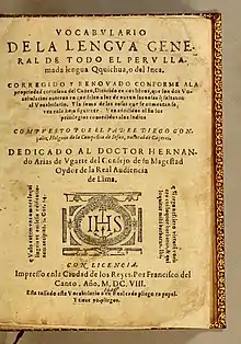 - Vocabulario de la lengua general de todo el Peru llamada lengua Qquichua, o del Inca (Lima, 1608)
