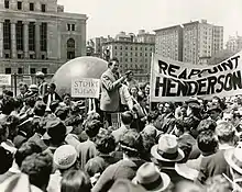 His mural Man at the Crossroads, originally a three-paneled work,[39] begun as a commission for John D. Rockefeller Jr. in 1933 for the Rockefeller Center in New York City, was later destroyed. Because it included a portrait of Vladimir Lenin, former leader of the Soviet Union and Marxist pro-worker content, Rockefeller's son, the press, and some of the public protested, but the decision to destroy it was made by the management company. Anti-Communism ran high in some American circles, although many others in this period of the Great Depression had been drawn to the movement as offering hope to labor.