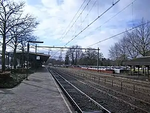 Dieren is a railway station located in Dieren, Netherlands. The station was opened on 2 February 1865 and is located on the Arnhem–Leeuwarden railway. Until 1976, the official name was Dieren-Doesburg. The train services are operated by Nederlandse Spoorwegen. Behind the station there is a steam railway that runs from Dieren to Apeldoorn via Beekbergen operated by the Veluwsche Stoomtrein Maatschappij over the old passenger line to Apeldoorn (opened in 1887, closed in 1950).