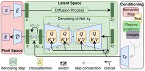 Since the diffusion model is a general method for modelling probability distributions, if one wants to model a distribution over images, one can first encode the images into a lower-dimensional space by an encoder, then use a diffusion model to model the distribution over encoded images. Then to generate an image, one can sample from the diffusion model, then use a decoder to decode it into an image.[13]