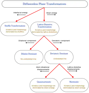 The first distinction can be drawn between transformations dominated by lattice-distortive strains and those where shuffles are of greater importance.