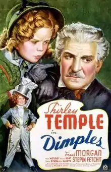 Dimples is a 1936 American musical drama film directed by William A. Seiter. The screenplay was written by Nat Perrin and Arthur Sheekman. The film is about a young mid-nineteenth century street entertainer (Shirley Temple) who is separated from her pickpocket grandfather (Frank Morgan) when given a home by a wealthy New York City widow (Helen Westley). The film was panned by the critics. Videocassette and DVD versions of the film were available in 2009.