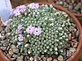 Dionysia is a genus containing 49 species of flowering plants in the family Primulaceae. They are small, cushion-forming alpines native to mountains in central Asia. They are usually evergreen perennials with felted leaves, covered with bright yellow or pink, five-petalled flowers in spring.[1] They are often difficult to cultivate if the correct conditions are not provided.[2]