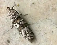 Dioryctria sylvestrella, the new pine knot-horn[2] or maritime pine borer,[3] is a moth of the family Pyralidae. It is found in Europe, parts of Asia and North Africa. The adult is a small mottled brown and white insect with a wingspan of 28 to 35 mm (1.1 to 1.4 in). The moth flies in a single generation from June to October and is a pest of maritime pine and several other species of pine, on which the caterpillars feed.