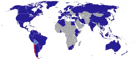 Countries that host Chilean embassies