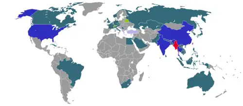 The National Unity Government has representative offices in several countries, against embassies which support or tolerate the State Administration Council.