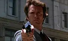 Jay Cocks of Time praised Eastwood's performance as Dirty Harry, describing him as "giving his best performance so far, tense, tough, full of implicit identification with his character."[43] Neal Gabler also praised Eastwood's performance in the film: "There's an incredible pleasure in watching Clint Eastwood do what he does, and he does it so well."[44] Film critic Roger Ebert gave the film three stars out of four, calling it "very effective at the level of a thriller" but denouncing its moral position as "fascist".[45] Gene Siskel gave the film a full four out of four stars and praised it as "one of the great police thrillers of motion picture history", though he too thought that the film's message was "dangerous".[46] Roger Greenspun of The New York Times wrote that "what makes Dirty Harry worth watching no matter how dumb the story, is Siegel's superb sense of the city, not as a place of moods but as a theater for action."[47] Kevin Thomas of the Los Angeles Times called it "a high-style film with lowbrow appeal, a movie after which you may dislike yourself for liking it as much as you do."[48] Stanley Kauffmann of The New Republic described Dirty Harry as "disgusting".[49]