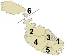 Statistical Districts of Malta. Note: indexed here as 6, Gozo and Comino is a Statistical Region in its own right