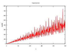 The behaviour of the sigma function is irregular. The asymptotic growth rate of the sigma function can be expressed by: [18]