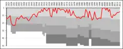 | 3 | 1968–1984 | 289 (54) | 0 (0) | 8 (0) | 2 (1) | 299 (55) | |