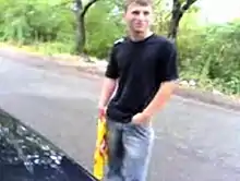 The suspects' cellphones and personal computers contained multiple video recordings of the murders. A video was leaked to the Internet under the title "3 Guys 1 Hammer",[41] showing the murder of 48‑year-old Sergei Yatzenko. He is seen lying on his back in a wooded area and is struck repeatedly in the face with a hammer held inside a plastic bag. One attacker stabs Yatzenko in the eye and abdomen with a screwdriver. Yatzenko is then struck with the hammer to ensure he is dead. The attack lasts over four minutes, during which the victim lapses in and out of consciousness. One murderer is seen smiling at the camera during the video.[42] The murderers walk back to their car, showing that the crime took place close to the side of a road, next to their parked car. They discuss the murder calmly, expressing mild surprise that the victim was still breathing after a screwdriver was plunged into his exposed brain. The suspects then wash their hands and the hammer with a water bottle and begin to laugh. Only two suspects appear to be present in the video, with one always behind the camera.