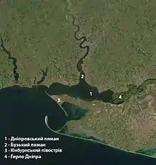 ![]() Satellite view of the Dnieper–Bug estuary | |