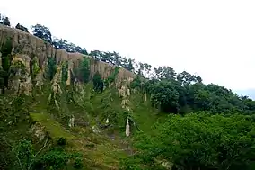 Dochū-Kōtsu Prefectural Natural Park (土柱高越県立自然公園, Dochū-Kōtsu kenritsu shizen kōen) is a Prefectural Natural Park in northern Tokushima Prefecture, Japan. Established in 2005, the park encompasses a stretch of the Yoshino River, Mount Kōtsu (高越山), the temple of Kōtsu-ji (高越寺) and the earth pillars of Awa-no-Dochū (阿波の土柱).[1][2]