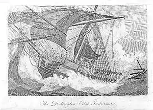 Doddington was an East Indiaman of the British East India Company (EIC). She made two trips for the EIC to Bombay, China, and Mokha. On her third trip she was sailing to India to remain there when she was wrecked on 17 July 1755 at Bird Island in Algoa Bay, near present-day Port Elizabeth.[3][4] The ship was carrying a hoard of gold belonging to Clive of India, which modern treasure hunters looted. The controversy over these depredations resulted in changes to international maritime treaties to better protect underwater cultural heritage.