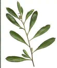 Dodonaea viscosa subsp. angustifolia, synonym Dodonaea angustifolia,[1] (sand olive) is a slender shrub or small tree that occurs naturally from southern Africa to Arabia, as well as in Australia and New Zealand. The seed capsules are three-winged and are dispersed by wind. Although occurring in rocky areas, it is also cultivated to stabilise moving sand and to prevent erosion.