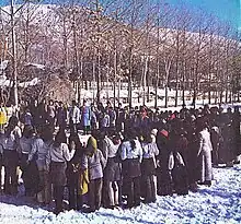 The Girl Scout organization in Iran was known as Dokhtarān-e Pīshāhang-e Īrān (Persian: دختران پیشاهنگ ایران) or Fereshtegān-e Pīshāhang-e Īrān, (Persian: فرشتگان پیشآهنگی ایران, literally Angel Scouts of Iran). The Iranian Scouting Girl Scout Section is a former member of the World Association of Girl Guides and Girl Scouts, last mentioned in 1979.[1]
