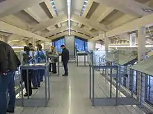 The exhibition covers the two floors of the main building and extends through the tunnel to the bunker. However, only a portion of it is dedicated to the history of the Obersalzberg itself, including a small section on the post-1945 era, when most of the area was used by the American military. The ground floor of the main building and most of the tunnel exhibits cover general topics of Nazi Germany, such as "The Fuehrer", "Actors in the regime", "Machinery of Terror", "Resistance", "Foreign Policy" etc. that are not directly related to the Obersalzberg resort.[8] The path of the exhibition ends in a documentation of the Holocaust in the dark of the bunker. Only a part of the extensive shelter network is accessible today. There are also special exhibitions. The 2008 Winter Exhibition was about "Free time in Fascism". From October 2012 to April 2013, the museum showed an exhibition on the victims of euthanasia.[9]