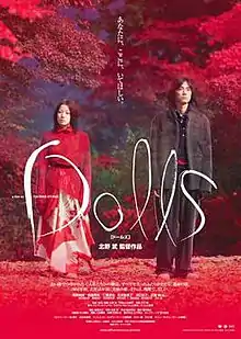 Dolls (Japanese: ドールズ, Hepburn: Dōruzu) is a 2002 Japanese film written, edited and directed by Japanese director Takeshi Kitano. A highly stylized art film, Dolls is part of Kitano's non-crime film oeuvre, like 1991's A Scene at the Sea, and unlike most of his other films, he does not act in it. The film has been praised for its cinematography (Katsumi Yanagishima) and features costumes by Yohji Yamamoto.
