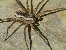 Dolomedes scriptus is a fishing spider found in the United States and Canada,[1] known as the striped fishing spider.[2] Female spiders can grow to be over 6 cm in legspan. The spider is a pale brown colour with lighter stripes around its legs and a stripe down each side of the body. It is similar to D. tenebrosus.