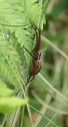 - ↑ "Dolomedes striatus species Information". BugGuide.net. Retrieved 2019-09-24.