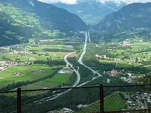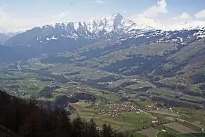 The Domleschg valley is a broad valley, surrounded by high mountains. Before the Posterior Rhine was canalized in the 19th century, it would meander all over the valley. Its natural appearance is now only visible on the last kilometers before the confluence at Reichenau.