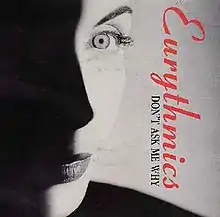 "Don't Ask Me Why" is a song recorded by British pop music duo Eurythmics, released as the second single from their seventh album, We Too Are One (1989). The song was written by bandmembers Annie Lennox and David A. Stewart and produced by Stewart with Jimmy Iovine. In the US, it was released as the first single from the album. It is a lush pop song with melancholy and bitter lyrics which describe the ending of a love relationship. In it Lennox tells the subject "don't ask me why / I don't love you any more / I don't think I ever did".