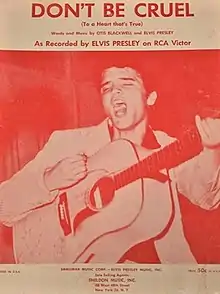 "Don't Be Cruel" is a song that was recorded by Elvis Presley and written by Otis Blackwell in 1956.[1] It was inducted into the Grammy Hall of Fame in 2002. In 2004, it was listed #197 in Rolling Stone's list of 500 Greatest Songs of All Time. The song is currently ranked as the 173rd greatest song of all time, as well as the sixth best song of 1956, by Acclaimed Music.[2]