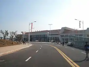 Dongguan railway station (Chinese: 东莞站; pinyin: Dōngguǎn Zhàn), also known as New Shilong railway station (Chinese: 新石龙站; Pinyin: Xīn Shílóng Zhàn) is a railway station on the Guangzhou–Shenzhen Railway, located between Chashan and Shilong, Dongguan, Guangdong in China. The station is designed by He Jingtang, a prominent Chinese architect and professor at the South China University of Technology's school of architecture.[1] It started to operate on January 8, 2014, which replaced Shilong railway station for the passenger train services.[2]
