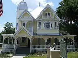 John P. Donnelly, a native of Pittsburg, came to Mount Dora in 1879. In 1881, he married Annie McDonald Stone, a prominent landholder in the community. Successful in a number of real estate and business ventures, Donnelly built this imposing Queen Anne style house in 1893. He was among the founders of the local yacht club, and served as the city's first mayor in 1910. In 1924, he sold the land for the park named for his wife, who had died in 1908. He died in 1930. The Donnelly House, now owned by Mount Dora Lodge #238, F.&A.M., was listed in the National Register of Historic Places on April 4, 1975.