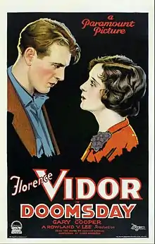 Doomsday is a 1928 American romance drama silent film directed by Rowland V. Lee and starring Florence Vidor and Gary Cooper. Written by Julian Johnson, Donald W. Lee, and Doris Anderson, based on the 1927 novel Doomsday by Warwick Deeping, the film is about a woman who marries a wealthy landowner to escape her life of poverty, leaving behind the handsome farmer she truly loves. Produced by Jesse L. Lasky, Rowland V. Lee, Hector Turnbull, and Adolph Zukor for Paramount Pictures, Doomsday was released on February 18, 1928 in the United States.[1]