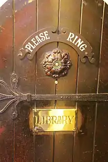 Doorbell at the entrance of Chetham's Library, Manchester, England